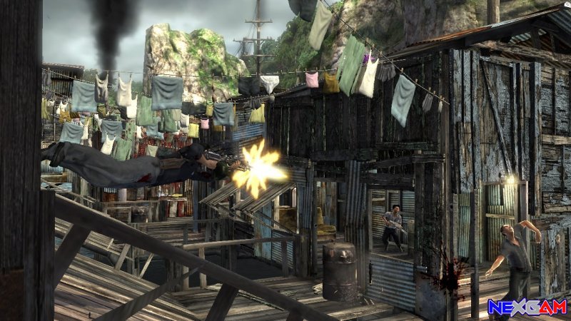 Action bietet Stranglehold wahrlich genug. Trotz der kurzen recht Spielzeit werdet ihr mehr böse Jungs ins Nirvana schicken als in den meisten anderen vergleichbaren Spielen. Aus sämtlichen Ecken, Türen und Fluren kommen die Gegner im riesigen Scharen auf euch zu, die Waffen stets im Anschlag. Glücklicherweise verfügen sie nicht über die gleichen Fähigkeiten wie unser Alter Ego Tequila, der durch stylishe Sprünge die ganze Action zur Choreographie werden lässt. Eines der wichtigsten Features ist die sogenannte Tequila Time, welche nicht mehr darstellt als eine überarbeitete Fassung der Bullet Time aus Max Payne, Matrix und Konsorten. Der kleine aber feine Unterschied ist der, dass die Tequila Time nur dann aktiviert wird, wenn ihr während eines Sprungs einen oder mehrere Gegner im Visier habt. Zwar gibt es auch noch einen Button mit dem die Tequila Time manuell aktiviert werden kann, aber das wird, insofern ihr nicht direkt im höchsten Schwierigkeitsgrad spielt, nur relativ selten genutzt.