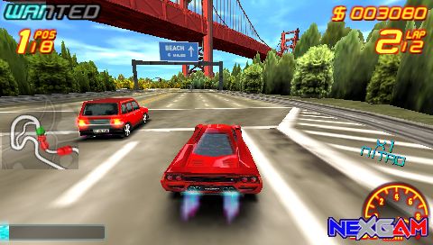 Besser gut geklaut als schlecht erfunden? Vom Gameplay gibt es nichts wirklich Neues, so gibt es eine Brise Takedown aus Burnout Legends, einen Hauch Drift aus Ridge Racer, gewürzt mit einem Schuss Verfolgungsjagd wie in Need for Speed - Des Weiteren einige Songs alá EA Trax um euch die Rennhatz schmackhaft zu machen. Die Streckenwahl ist mit ihren 14 in verschiedenen Ländern angesiedelten Routen gut gestreut. So fahrt ihr in Paris am Arc de Triomphe vorbei, in London wartet Big Ben auf euch und in San Francisco gibt's ein Wiedersehen mit der Golden Gate Bridge. Jedes Areal wartet zudem mit einer oder mehreren Alternativrouten und Abkürzungen auf, die euch Powerups und Zeitvorteil sichern.