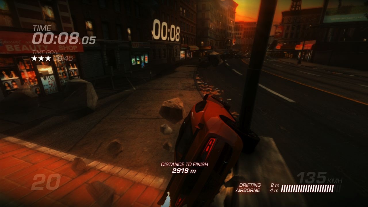 Bei Unbounded funktioniert das Ganze anders. Hier müsst ihr den Knopf (B in der Xbox 360 Variante) länger gedrückt halten. Zudem spielt Timing eine entscheidende Rolle. Drückt ihr den Drift-Knopf nur kurz, kann es passieren, dass ihr euren Wagen abbremst und euch so einen Nachteil im Rennen verschafft. Haltet ihr ihn zu lange gedrückt, kommt ihr mit dem Gegenlenken nicht mehr parat, kracht in ein Gebäude oder dreht euch mit rauchenden Reifen im Kreis. In Zusammenhang mit den verschiedenen Attributen der Fahrzeuge ist die Eingewöhnungszeit hier viel länger und kratzt zuweil gehörig an den Nerven. Nämlich dann, wenn ihr glaubt, das System verstanden zu haben, und trotzdem unkontrolliert in euer Verderben kracht.