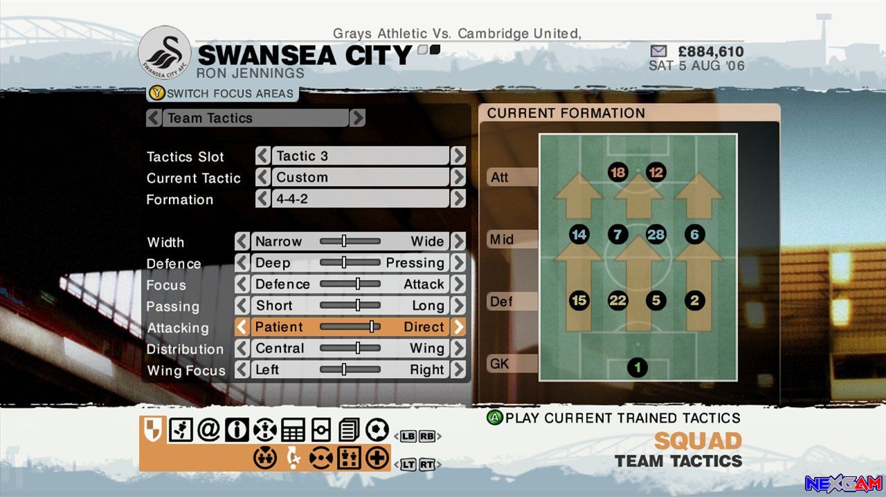 Doch ich empfehle euch, die Spiele in der 3D Match Engine anzuschauen. Schon in den letzten Jahren hatte die BDFL Manager-Reihe immer ordentliche Engines zu bieten und das ist auch in diesem Jahr der Fall. Der durch das Anschauen des Spiels resultierende Vorteil liegt auf der Hand: ihr könnt ins Geschehen eingreifen und somit auf eintretende Dinge direkt reagieren. Ungeduldige Naturen haben hier auch die Möglichkeit, via X-Button den Spielverlauf auf 'Fast Forward' zu setzen und somit im Schnelldurchlauf durch die aktuelle Partie zu gehen. Über die Buttons des Xbox 360 Pads könnt ihr außerdem schnell taktische Anweisungen geben und Spieler aus- bwz. einwechseln. Welche taktischen Befehle ihr über die Hotkeys ausruft, lässt sich im umfangreichen Menü während eines Spiels detailliert bestimmen. Umfangreichere taktische Eingriffe wie Aufstellungsänderungen usw. werden im Menü selber vorgenommen. Wer es gerne besonders realistisch hat, kann auf die Manager-Kameraperspektive zurückgreifen, die euch das Spielgeschehen aus der wirklichen Position des Trainers am Spielfeldrand erblicken lässt.