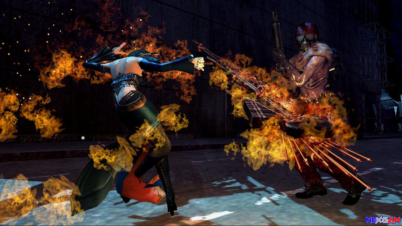 Das Spielprinzip von Bullet Witch ist sehr einfach gestrikt. In der Praxis sieht es so aus, dass ihr die linearen Wege entlang lauft und immer wieder auf große Gruppen von Gegnern trefft. Diese gilt es dann zurück in die Hölle zu schicken. Dabei hilft euch der etwas andere ‚Besen’ von Alicia, der zur Multifunktionswaffe umgebaut wurde. Die Kämpfe sind größtenteils recht anspruchslos, was in erster Linie an der ziemlich ärmlichen KI der Gegner liegt. Diese steigt zwar im späteren Spielverlauf nochmal ein bisschen an, doch letztlich werdet ihr in Bullet Witch durch die normalen Gegner nicht vor erwähnenswerte Probleme gestellt. Der typische Dämon aus Bullet Witch erscheint zunächst humanoid, doch bei näherer Betrachtung wird klar, dass irgendwas nicht stimmt. Einzelne Körperteile der vom Dämon getöteten Menschen haben sich an ihre Körpern geklebt, so dass es hin und wieder richtig abgefahren wird. Da endet die Ideenvielfalt beim Design aber auch schon, denn diese Gegnerart folgt euch bis ans Ende des Spiels und irgendwann wird es dann doch recht langweilig, immer wieder die gleichen Jungs in ihre Schranken zu weisen.