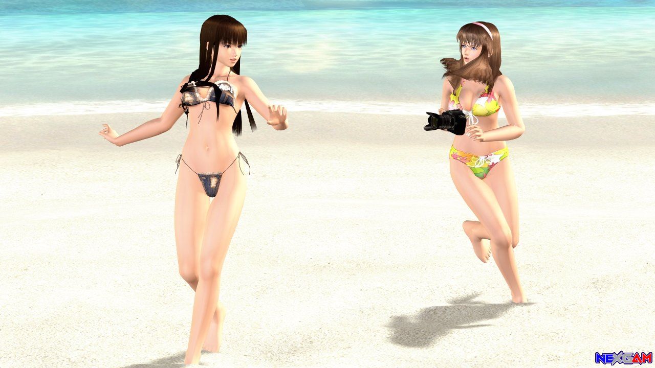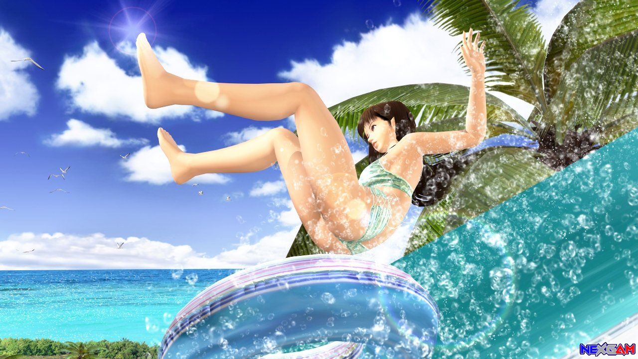 Bei dem Spiel mit der Flagge müsst ihr, wie von der Tarantel gestochen, wiederholend den „A“-Button drücken, um zu rennen. Beide Spielerinnen starten vom Boden aus und müssen die Flagge abgreifen. Wer nah genug dran ist, drückt im richtigen Moment „B“ und hat mit etwas Glück gewonnen. Wasserrutsche fand ich persönlich am lustigsten, neben „Po-Gepöbel“ selbstverständlich *grunz*. Hier gilt es eine opulente Wasserrutsche zu meistern, ohne dabei aus der Bahn zu fliegen – garantiert GS-geprüft! Als letzte Neuerung ist der Voyeur-Modus hinzugekommen. Der heißt natürlich nicht so, aber das trifft es am Besten. Kauft euch im Shop eine Kamera und fotografiert z.B. Hitomi beim Spaziergang am Strand oder beim Schaukeln. Dabei könnt ihr natürlich so nah ranzoomen, wie ihr möchtet.