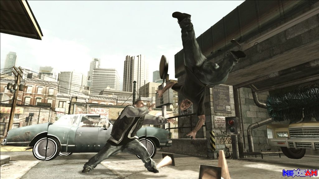 Letztere spielt in Def Jam: Icon eine nicht zu verachtende Rolle. Sobald die dröhnenden Beats aus den Boxen ertönen, fängt die Umgebung an im Takt zu pulsieren und kann dabei enormen Schaden verursachen. Das würde dann ungefähr so ablaufen, dass z.B. ein Auto mit dem Heck ausschert, ein Helikopter mit seinen Rotorblättern eure Cornrows stutz oder die Kameras eines Fernsehstudios euch eins auswischen. Wer zu falschen Zeit am falschen Ort ist, bekommt so ordentlich eins auf die Mütze und kassiert ordentlich Schaden ein.