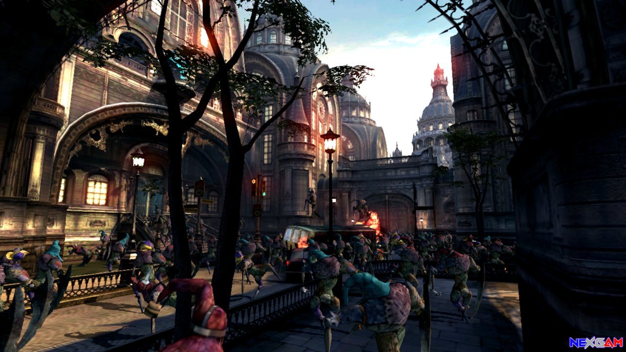 Wie der Prolog bereits offenbart, führtDevil May Cry 4mit Nero einen neuen Protagonisten ein, dessen Geschicke der Spieler die erste Hälfte des Action-Games lenkt. Im Gegensatz zu Dante, dem Solid Snake unter den Dämonenjägern, mimt Nero den unerfahrenen Heißsporn, wobei die Kampfkraft der beiden Kontrahenten ident ist. Trotz äußerer Ähnlichkeiten zocken sich Nero und sein Counterpart unterschiedlich, was vor allem den abweichenden Fähigkeiten geschuldet ist. Sofort sticht Neros dämonischer rechter Arm ins Auge, der auf die flauschige Bezeichnung "Devil Bringer" hört. Auf Knopfdruck entsprießt dieser Extremität ein Energiestoß, mit dem sich Nero zu entfernten Objekten hangeln kann, alternativ zieht er diverses Feindgetier zu sich rüber. Anschließend wird das bedauernswerte Geschöpf nach Strich und Faden per Devil Bringer vermöbelt, wobei sich die Attacke nach dem Gegnertyp richtet. Während Dämon A also kurzerhand mit dem Gesicht in den Asphalt gedrückt wird, schleudert Nero Dämon B locker-flockig durch die Luft und vermöbelt damit die übrige Teufelsbrut.