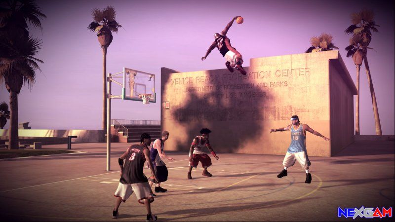 In der Homecourt Challenge, die quasi den Karriere-Modus von NBA Street Homecourt darstellt, zieht ihr mit einem selbst erschaffenen „Baller“ über die Straßenplätze der Vereinigten Staaten. Die Kreation des eigenen Charakters ist hier schon ziemlich witzig... Statt von 0 anzufangen, wie in anderen Sporttiteln (z.B. Tiger Woods PGA Tour), wählt ihr in NBA Street Homecourt aus einer großen Palette zwei NBA Stars aus – die Gestalt, die durch die „Kreuzung“ der beiden entsteht, ist euer neues Alter Ego. Für unsere Testsession kreuzten wir Dirk Nowitzki mit Allen Iverson und das Resultat sorge für den ersten Lacher. Später bestimmt ihr dann noch eure Position (Guard, Center, Forward) und auf welche Attribute ihr verstärkt setzen wollt. Zu Beginn der Challenge wählt ihr aus unbekannten Vorort Spielern zwei Kollegen für euer Team aus, die ihr im eigentlichen Spiel dann natürlich auch steuern könnt (Spielerwechsel über A-Button). Auch hier sind die Attribute natürlich entscheidend – drei Spieler mit hohen Dunk-Werten aber niedrigen Steal-Skills im Team zu haben wird euch auf lange Sicht nicht wirklich helfen. Sobald das Team steht, nehmt ihr der Reihe nach Herausforderungen von anderen Mannschaften an und tretet auf den verschiedensten Plätzen gegen jene an. Die Voraussetzungen für den Sieg in einer Partie variieren: mal geht es ganz normal bis ein Team 21 Punkte erreicht, mal sind nur Punkte via Dunks erlaubt, mal nur via normalem Wurf oder es werden nur Punkte gezählt, die in einer Gamebreaker Phase eingefahren werden.