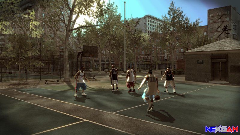 NBA Street – das steht seit sechs Jahren für schnelles, atemberaubendes Gameplay mit Tricks, die man im ‚normalen’ Basketball nur selten zu Gesicht bekommt. Und diese Kombination funktioniert nach wie vor wunderbar. Für NBA Street Homecourt haben sich die Entwickler bei EA das Ziel gesetzt, das Spiel zu vereinfachen, zugänglicher zu machen und die Reihe dennoch nicht stagnieren zu lassen. Das macht sich zunächst in Sachen Steuerung bemerkbar, wo der Trick Stick aus dem letzten Teil der Reihe verschwunden ist. Die einfachen Tricks werden nun via X- und Y-Button des Xbox 360 Pads ausgeführt. Um möglichst viele verschiedene Ausführungen der Tricks auf diese beiden Buttons zu legen, muss man zwischen Antippen, Buttonmashing und langem Gedrückthalten unterscheiden (siehe Video unten vor dem Fazit). Drückt ihr den X-Button schnell hintereinander, dribbelt der Spieler den Ball dementsprechend schnell. Haltet ihr den X-Button gedrückt, so holt der Spieler mit seinen Armen viel weiter aus – was natürlich eine indirekte Einladung für den gegnerischen Spieler ist, um zum Steal anzusetzen. Um noch schärfere Tricks auf den Asphalt zu zaubern, kombiniert ihr die beiden Buttons des Pads mit dem linken und rechten Bumper und bringt eure Gegner zum Staunen.