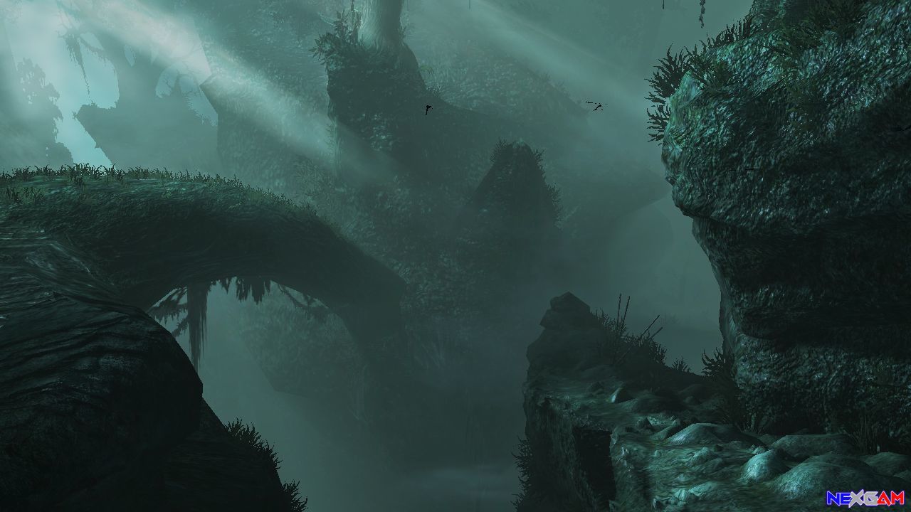 Denn vom ansonsten strikt angelegten Genre weicht das Spiel in den Kong-Sequenzen ab. Ihr seht den riesigen Affen in seiner ganzen Pracht, die Kamera fängt dabei selbstständig die Action aus dem besten Winkel ein. In diesen Teilen des Spiels geht es zumeist darum, an Wänden entlang zu krabbeln, von Ast zu Ast zu springen und den bösen Dinosauriern ordentlich auf die Mütze zu geben. Die Steuerung gestaltet sich dabei sehr simpel und lässt euch wenig Probleme haben. Per Knopfdruck schlagt ihr auf die Dinos ein und sorgt so für Ruhe. Am Ende eines Kampfes bietet sich besonders fürs Auge einer von zwei Finishing-Moves an, in denen Kong dem T-Rex z.B. den Kiefer bricht. Die Kong-Teile des Spiels sind richtig spaßig und hätten gerne öfter auftreten dürfen. Im Kampf mit mehreren Gegnern fühlt ihr euch einfach wunderbar und genießt es richtig, auf die ganze Kraft des Affen zurückgreifen zu können. Die Stellen, an denen ihr euch an Ästen entlang hangelt oder an Felsen herumklettert sind zwar total linear, wirken aber aufgrund der erneut bombastischen Inszenierung einfach nur gewaltig und sorgen für ein eindrucksvolles animalistisches Erlebnis der etwas anderen Art.