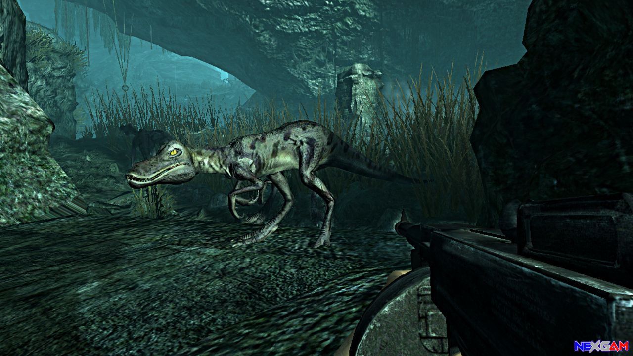 King Kong ist in erster Linie ein relativ gewöhnlicher Ego-Shooter – ihr seht das Geschehen aus den Augen von Jack Driscoll. Wer aber wilde Ballerorgien erwartet, wird nicht wirklich bedient. Zwar sind auf der gesamten Insel Kisten mit Waffen und Munition zu finden, doch diese reicht in den meisten Fällen nicht ansatzweise aus, um gegen eure Widersacher auch nur den leisesten Hauch einer Chance zu haben. Diese Gegner bestehen zum größten Teil aus kleineren Biestern wie Krabben, Skorpionen, aggressiven Flugsauriern und diversen anderen Mutationen. Recht früh im Spiel stellt ihr aber fest, dass auf dieser Insel nicht nur jenes Kleinvieh Mist macht, sondern auch ganz schön imposante Dinosaurier ihr Unwesen treiben, die scheinbar vergessen haben zu sterben.