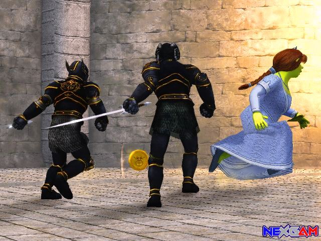 In der spielbaren Demo dürft Ihr einen Level mit Shrek durchlaufen. Nach einem optisch schönen Vorspann inklusive amüsanter "Kasperle-Theater" Einführung am Ende müsst Ihr den grünen Oger vom Schloss bis hin auf ein großes Segelschiff steuern, welches der Startpunkt Eurer Reise in die fernen Länder sein wird. Die Kameraperspektive ist hierbei schräg von der Seite angebracht, was bei bestimmten Sprungeinlagen über tiefe Schluchten leider zum Nachteil wird, da man die Sprungweite schlecht abschätzen kann und Ihr sicherlich auch einmal in die Tiefe stürzen werdet.