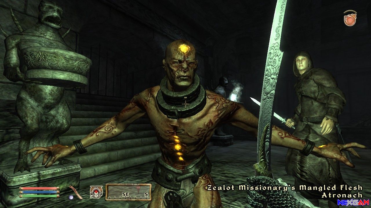 Die meisten Quests in Shivering Isles schicken euch in riesige und durchaus komplexe Dungeons und verlangen von euch, Artefakte zurück ans Tageslicht zu bringen und natürlich dabei viele feindlich gesinnte Kreaturen ins Jenseits zu befördern. Einige dieser Quests sind dabei wirklich sehr interessant und mit einem cleveren Design versehen. In einem frühen Auftrag müsst ihr z.B. ein altes Dungeon „reanimieren“, welches als Falle wirkt, damit tollkühne Abenteurer auf der Suche nach den Shivering Isles möglichst früh aus dem Weg geräumt werden und das Reich des Wahnsinns nicht von Touristen überlaufen wird. Leider hält Shivering Isles diese Qualität nicht durchgehend, denn im späteren Verlauf verbringt ihr die meiste Zeit mit einfachen „Hol ein Item und bring es zurück“-Missionen, die nach gewisser Zeit dann doch ein wenig langweilen. Déjà vu Erlebnisse stehen hier leider an der Tagesordnung, da sich die Höhlen und Dungeons oftmals auch sehr ähneln.