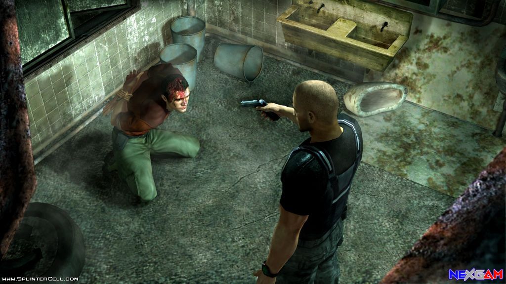 Natürlich greift unser Held zur Lösung seiner Aufgaben wieder auf sein umfangreiches Reportuoe an Moves zurück. Es soll ja immer noch welche geben, die bis dato nie ein Splinter Cell Abenteuer gespielt haben, von daher hier noch einmal eine kurze Zusammenfassung: Neben ducken, schleichen, klettern, hangeln und an die Wand pressen, kann Sam z.B: auch zwischen zwei Wände springen, um von dort aus zu schießen, sich auf einen Gegner fallen oder einfach nur unentdeckt zu bleiben. Von Rohren aus kann er sich herablassen um fiese Genickbrecher durchzuführen. Mit dem Messer schlitzt er sich Wege frei oder setzt sich in brenzligen Situationen zur Wehr (was aber so meist die letzte Wahl sein sollte). Natürlich kann er Schlösser knacken, Computer hacken und High-Tech Elektronik und Waffen wie z.B. Haftkameras bedienen, welche u.a. Gegner anlocken und per Gas ausschalten können.