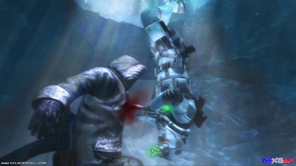 Per Optically Channeld Potentiator (OPC) kann Sam elektrische Geräte außer Kraft setzen und sich so unter anderem in den Schutz der Dunkelheit begeben. Die Waffen lassen sich auch mit anderen nützlichen Dingen wie Ring.- oder Elektroschockergeschossen aufrüsten, welche Feinde zwar unschädlich machen, diese aber am Leben lässt, was eventuell eine Auflage der Mission sein kann. Neu hinzugekommen ist nun ein Greifen des Gegners an einer Ecke bzw. Tür. Steht Ihr hier mit dem Rücken zur Wand könnt Ihr einen Gegner rum reißen und ihn sofort in den Schwitzkasten nehmen um ihn außer Gefecht zu setzen beziehungsweise vorher eventuell auszuhorchen. Ebenfalls neu sind Sam´s Schwimm.- & Tauchkünste. Hier kann er ab sofort Gegner an der Wasseroberfläche ins kalte Nass ziehen, teils gar durch Eis brechen um einen Bösewicht ins dunkle Wassergrab zu holen. Und hab ich schon erwähnt, dass es dieses Mal auch an einem Fallschirm zur Sache geht.. ,,,)