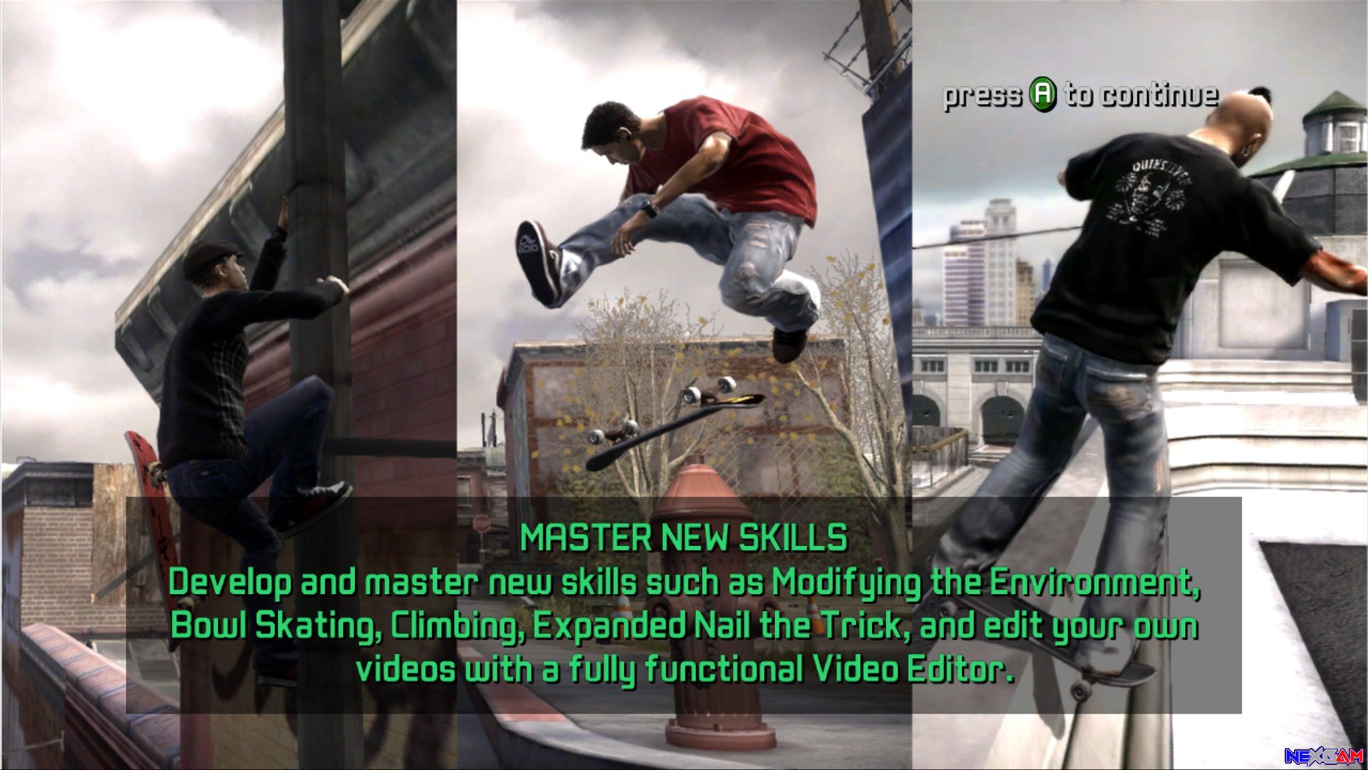Genauso das Leveldesign mit seinen unzähligen möglichen Wegen... Es lässt sich weiterhin locker flockig, ohne Rücksicht auf unnötigen Realismus skaten. Aber das macht die Serie auch aus: es soll Spaß machen ohne Einschränkung und das ist meiner Meinung auch gut so. Doch leider wird das ganze durch den Umstand wieder eingeschränkt, dass man sich jeden kleinen Trick erstmal beibringen lassen muss bevor man ihn anwenden kann, was dazu führt, dass die Möglichkeiten am Anfang arg begrenzt sind und sich die Lernphase so lange hinzieht, dass man das Gefühl hat die gesamte Spielzeit ein Tutorial zu spielen. Dafür sprechen auch die uninspirierten und zum größten Teil langweiligen und sich ständig wiederholenden Aufgaben, die man nach einer Zeit nur noch schnell hinter sich bringen will. Da hilft es auch nicht, dass die Macher drei verschiedene Storylines für drei verschiedene Skatestile eingebaut haben. Da meine Kritik auf alle drei gleichermaßen zutrifft, man hat ständig das Gefühl, dass das ganze nur eine Pflichtübung für die Programmierer gewesen ist und das schimmert an allen Stellen durch, ohne das man wirklich an der Oberfläche kratzen muss.