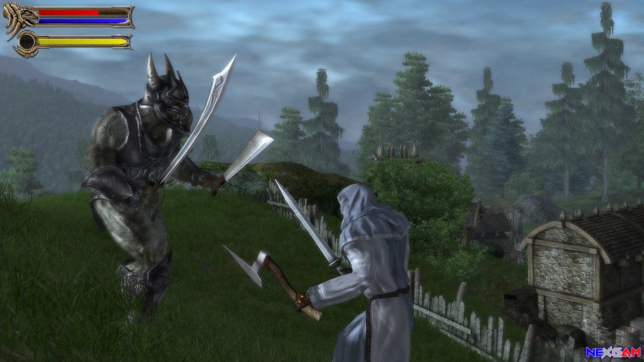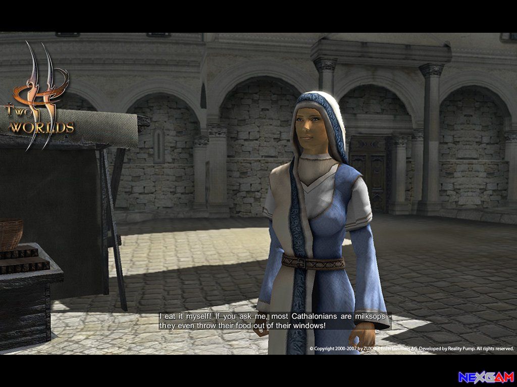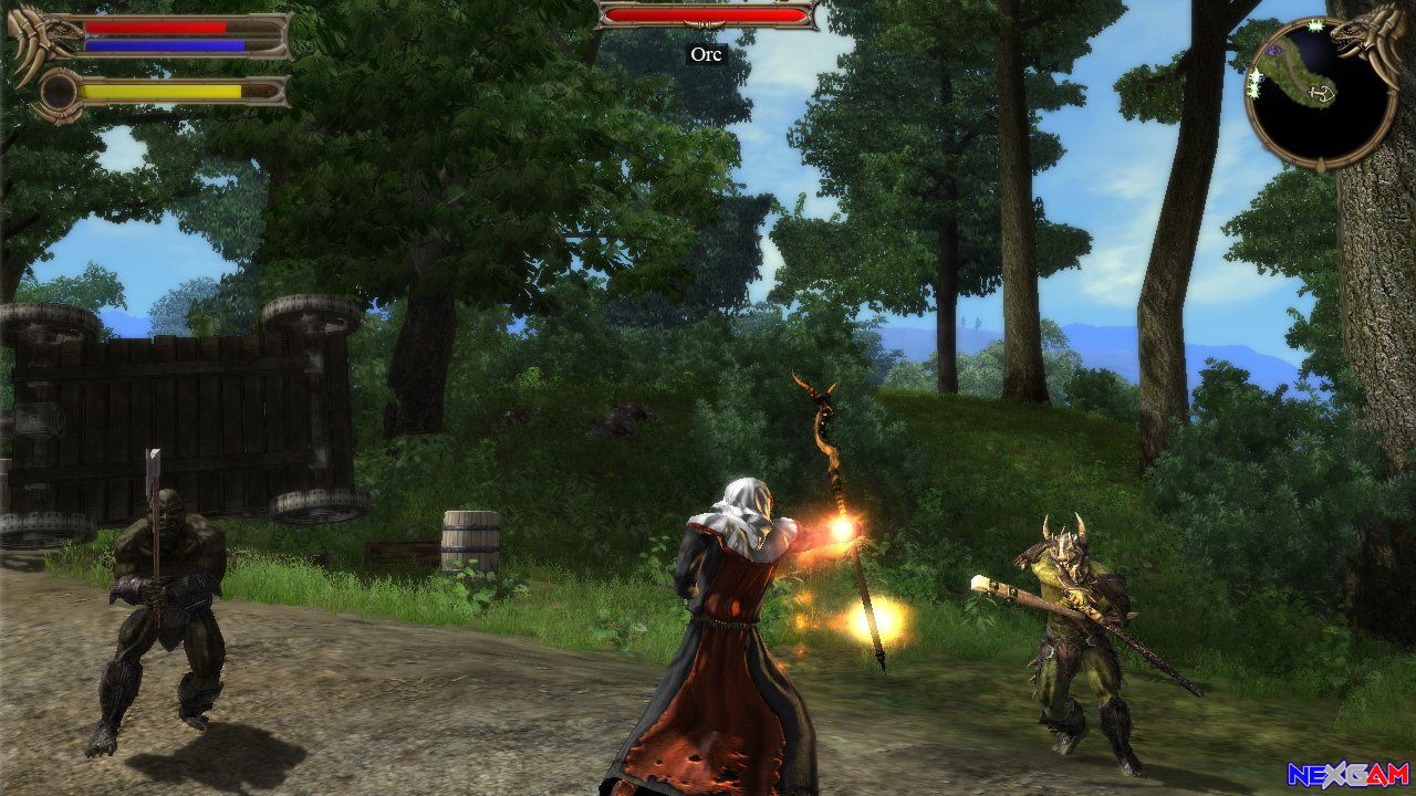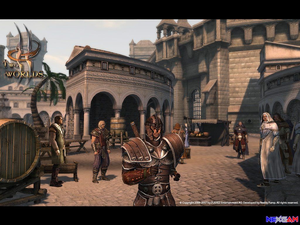 Was die Story angeht bringt euch Two Worlds eine für diese Art von Genrevertretern klassische Hintergrundgeschichte. Ein Krieg zwischen Menschen und Orks hat das Land Antaloor Jahre lang in Angst und Schrecken versetzt, bis es gelang, den Ork Gott Aziraal in einem magischen Grab gefangen zu halten. 300 Jahre später, zu Beginn der Handlung von Two Worlds, ist eine Gruppe von Zwergen während einer Minen-Expedition eventuell auf das Grab des längst vergessenen Bösewichts gestoßen – eine Tatsache, die die Beziehung zwischen Orks und Menschen erneut anspannt. Euer Alter Ego hat mit diesem ganzen Hin und Her eigentlich nichts zu tun, denn eure Schwester ist entführt worden und eigentlich habt ihr wahrlich andere Sorgen. Wie in anderen „Open World Rollenspielen“ habt ihr auch in Two Worlds die Wahl – direkt in die eigentliche Storyline einsteigen oder vielleicht doch lieber erstmal ein paar kleine Nebenquests erledigen? Im Gegensatz zu Oblivion gibt es bei Two Worlds übrigens kein Level-Balancing oder ähnliches, sprich ihr braucht die Erfahrungspunkte aus vielen Sidequests, um im späteren Verlauf der Mainquest noch Land zu sehen.