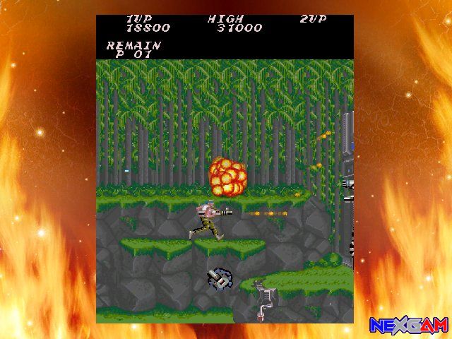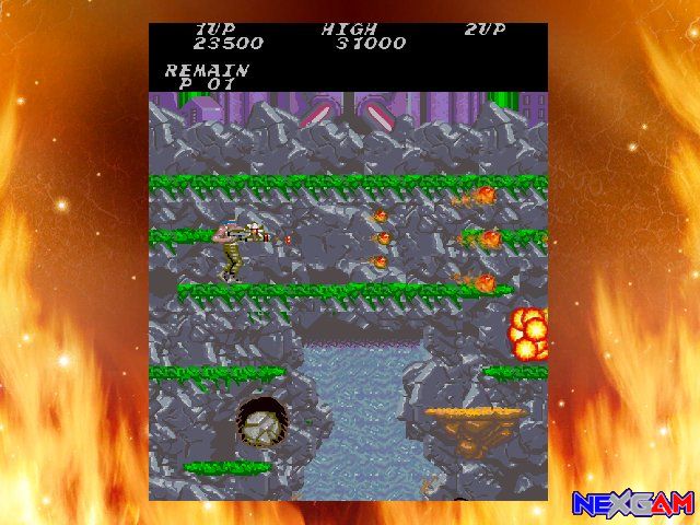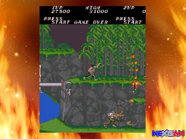 Bei diesem Titel handelt es sich um die Portierung der Automaten Version des 2D Sider-Scrollers Contra, welches auch für diverse Heimkonsolen umgesetzt wurde. Seit der ersten Veröffentlichung von Contra sind mittlerweile neun weitere Contra Teile erschienen. In Deutschland wird das Spiel vielen als Probotector bekannt sein. Konamis Contra hat unter anderem den Weg für das Run’n’Gun Genre geebnet und somit den Grundstein für weitere erfolgreiche Spiele-Serien, wie unter anderem Metal Slug und Gunstar Heroes ermöglicht. Der Spielablauf ist denkbar simpel. Ihr steuert die Spielfigur durch allerlei mögliche Levels und ballert dabei große Anstürme von gegnerischen Einheiten ab. Um den zahlenmäßig überlegenden Einheiten Parole bieten zu können, müsst ihr schnell reagieren und den Geschossen der Selbstschussanlagen gekonnt ausweichen. Außerdem könnt ihr auf ein umfangreiches Waffenarsenal zurückgreifen, die in Form von Power-Ups in den Levels verteilt sind.