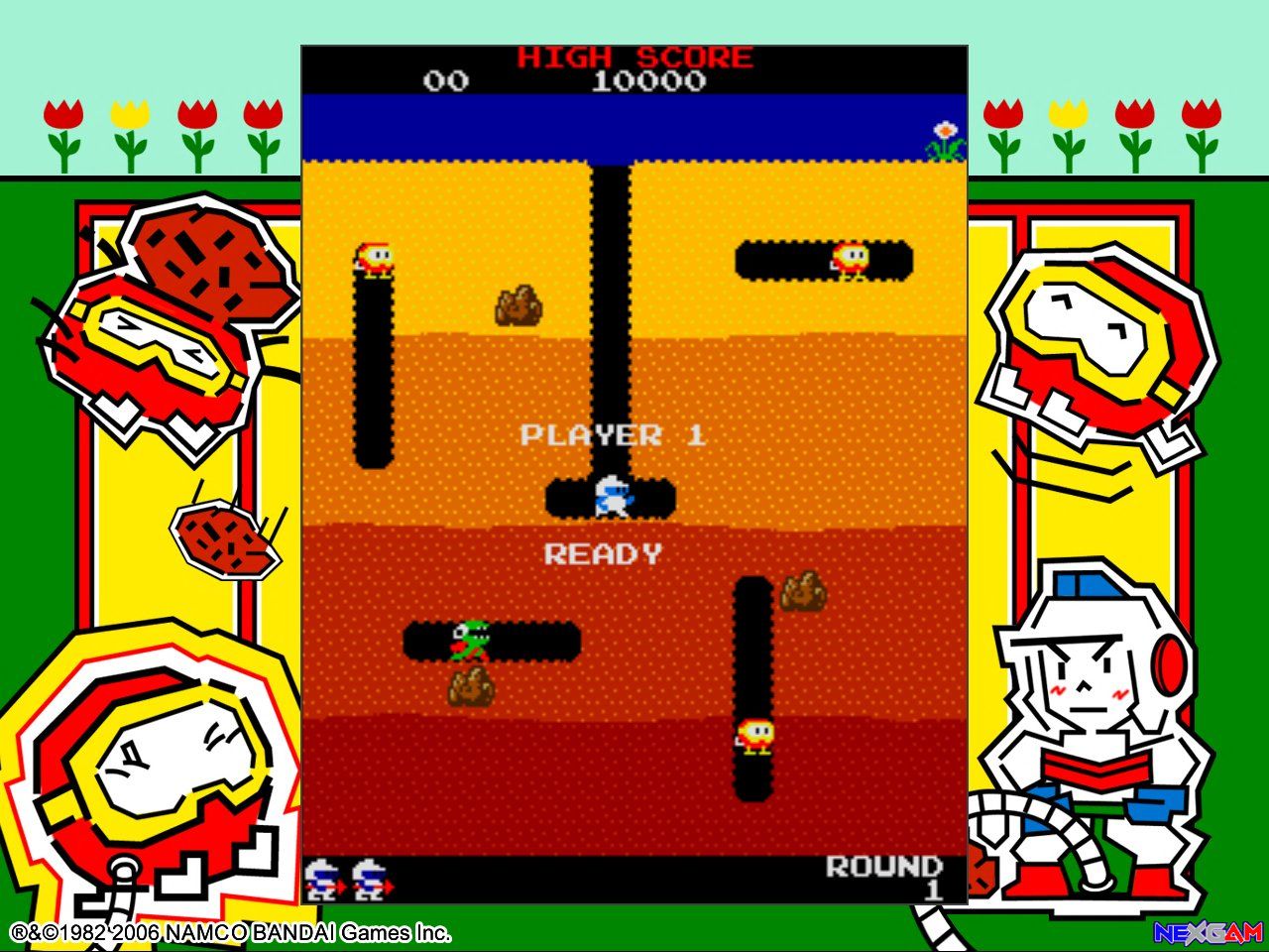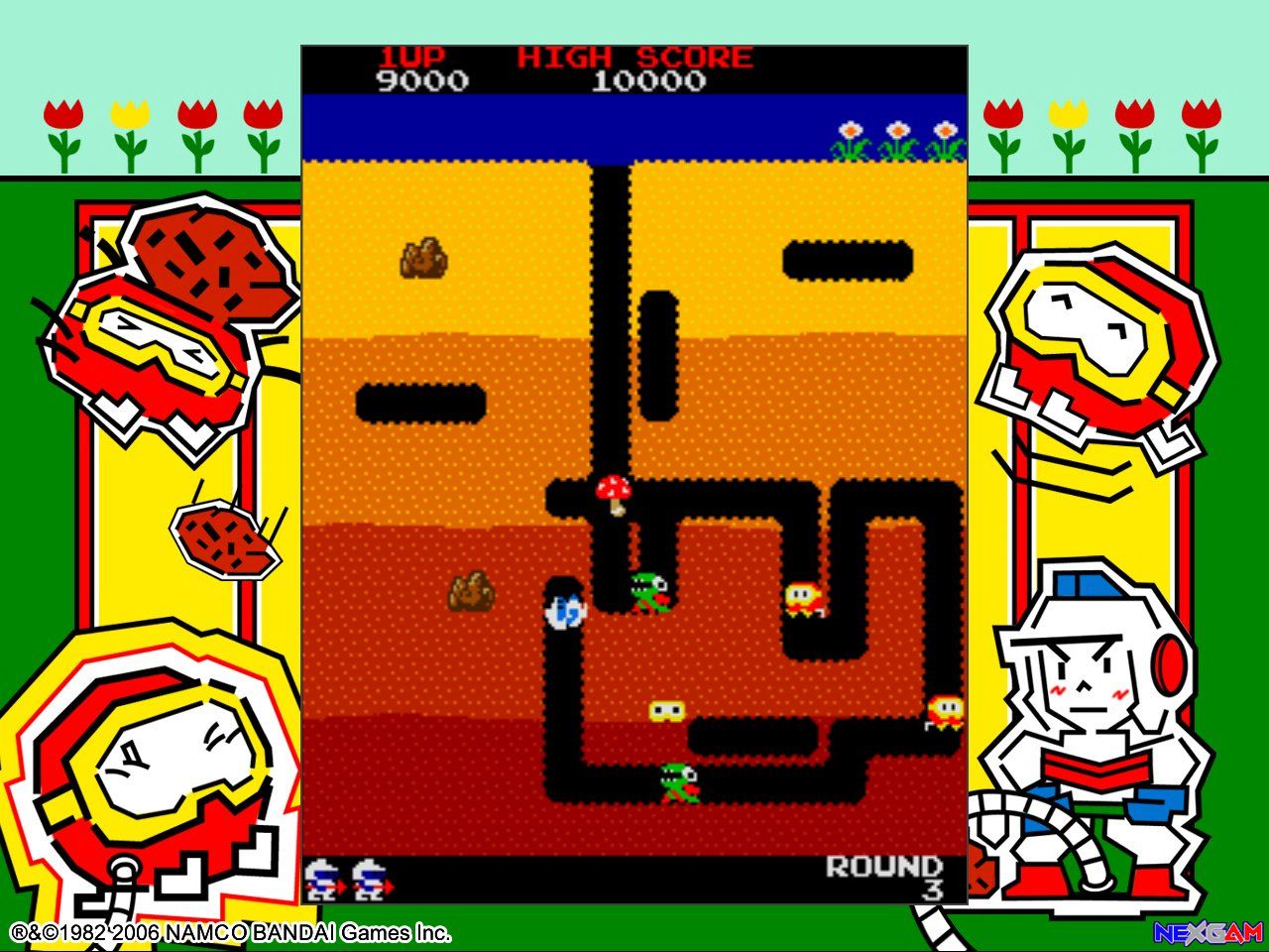 Bei Dig Dug übernehmt ihr die Kontrolle über die gleichnamige Spielfigur, die sich ihren Weg durch den Erdboden schaufelt. Um euch herum sind verschiedene Gegner platziert, die ihr natürlich versuchen müsst zu beseitigen, bevor sie euch zuvorkommen oder das Weite suchen. Die Gegner können durch eine luftpumpenartige Harpune zum Platzen gebracht werden. Dazu könnt ihr die Fieslinge auch mit den eingebuddelten Felsbrocken zermatschen. Verfolgen euch mehrere Gegner könnt ihr so gleich alle auf einen Streich plätten und viel mehr Punkte dafür kassieren. Wer genau hinsieht, der kann die unterschiedlichen Ebenen im Spielfeld sehen, die farblich voneinander getrennt sind. Wird ein Gegner in einer recht niedrigen Ebene ausgeschaltet , bekommt ihr dadurch mehr Punkte auf eurem Konto gutgeschrieben, als im Vergleich zu einer weitaus höheren Ebene. Für Highscore-Junkies sind die Achievements, sowie Online-Ranglisten wieder mit von der Partie und sorgen für einen zusätzlichen Motivationsschub.