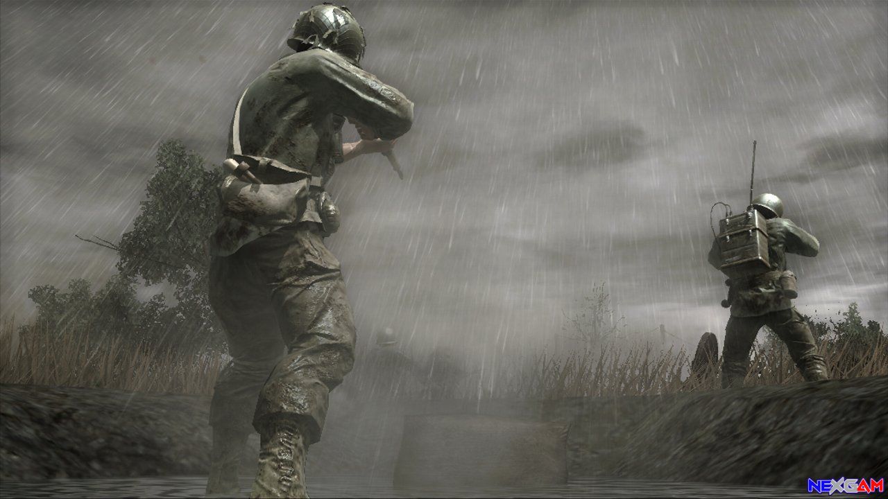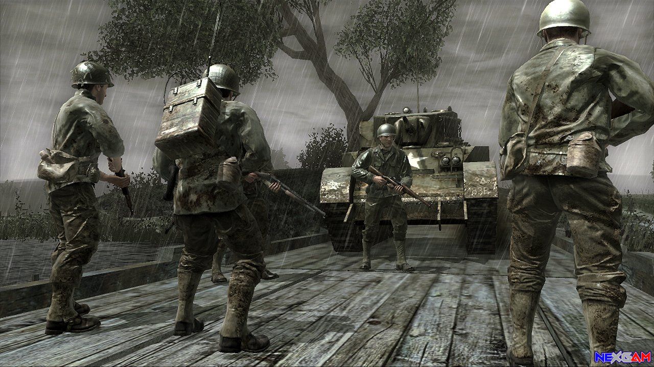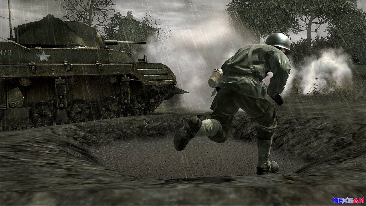 Zur kleinen Einführung in den Story-Modus gibt es erneut eine kurze Auszeit auf einem Basisgelände, dieses Mal der US-Armee. Hier erlernt Ihr in schnellen Schritten den Umgang mit der Waffe sowie mit Granaten. Eher Ihr Euch verseht sitzt Ihr dann auch schon auf einem LKW auf dem Weg zu Eurem Einsatzgebiet. Es gilt eine Stadt zurück zu erobern, was die Deutschen mit aller Macht verhindern wollen. Schon auf dem Weg dorthin erlebt Ihr in recht dramatischer Weise, dass das ganze kein Spaß gewesen ist. Ihr lernt aber auch schnell was Kameradschaft heißt, denn ohne diese kämt Ihr am ersten Schauplatz schon gar nicht mehr an. Und da sind wir dann auch schon an der Stadtgrenze mit einer kleinen Kirche und was hier nun beginnt wird Euren Herzschlag sicherlich bis zum Abschalten der Konsole nicht wieder unter 100 kommen lassen. „Für Action bitte hier lang“ muss dort irgendwo im Script gestanden haben und das wurde von den Programmierern sehr wörtlich genommen.